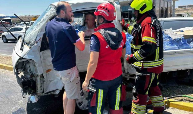 Balıkesir'in Ayvalık ilçesinde meydana gelen trafik kazasında bir tır, bir kamyonete çarptı. Kazada kamyonet sürücüsü ağır yaralandı.Edinilen bilgiye göre; İzmir ile Çanakkale'yi birbirine bağlayan E-787 karayolunun, Ayvalık Şehirlerarası Otobüs Terminali'ne giren sapakta; Celal Balık yönetimindeki 35 YLS 93 plakalı tır, sinyalizasyon ışıklarının önünde İsmail Demirkan yönetimindeki 10 ALM 891 plakalı su dağıtımı yapan bir kamyonete çarptı.Kazada çarpmanın etkisiyle yaklaşık 20 metre sürüklenen kamyonette sıkışan sürücü İsmail Demirkan, Ayvalık İtfaiye Grup Amirliği bünyesindeki ekiplerinin müdahalesiyle sıkıştığı yerden çıkartılarak, olay yerine gelen 112 Acil Yardım ekiplerine teslim edildi.Ayvalık Devlet Hastanesi'ne kaldırılan İsmail Demirkan'ın ağır yaralı olduğu öğrenildi.Kazayla ilgili soruşturma sürüyor.