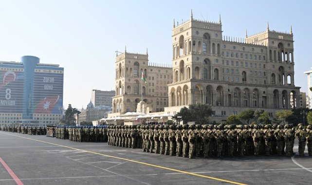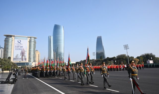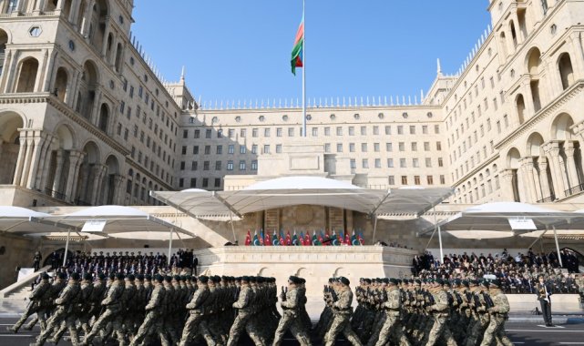 Azerbaycan, Ermenistan'ın işgaline son veren 2. Karabağ Savaşı'nın 5. yıl dönümünü başkent Bakü'de Türk askerlerinin de katılımıyla düzenlenen askeri geçit töreniyle kutladı.