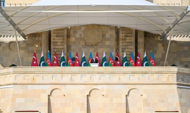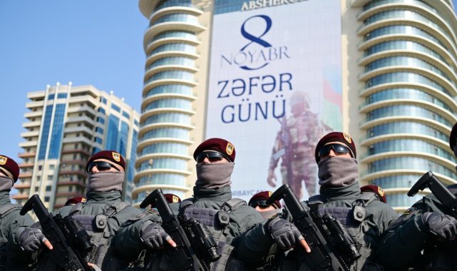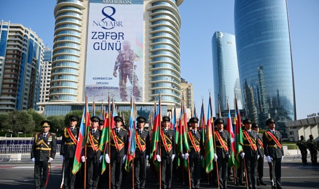 Azerbaycan, Ermenistan'ın işgaline son veren 2. Karabağ Savaşı'nın 5. yıl dönümünü başkent Bakü'de Türk askerlerinin de katılımıyla düzenlenen askeri geçit töreniyle kutladı.Azerbaycan ordusunun Karabağ'da 30 yıllık Ermenistan işgaline son vermesinin üzerinden 5 yıl geçti. Azerbaycan'ın başkenti Bakü'de 8 Kasım Zafer Günü'nün 5. yıl dönümü dolayısıyla askeri geçit töreni düzenledi. Azadlık Meydanı'nda gerçekleştirilen törene Azerbaycan Cumhurbaşkanı İlham Aliyev, Cumhurbaşkanı Recep Tayyip Erdoğan ve Pakistan Başbakanı Şahbaz Şerif katıldı. Töreni Erdoğan, Aliyev ve Şerif birlikte izledi. Üç ülkenin milli marşlarının seslendirilmesiyle başlayan törenin ardından 44 günlük savaşta şehit düşen askerlerin aziz hatırasına 1 dakikalık saygı duruşu yapıldı. Cumhurbaşkanı Erdoğan, Aliyev ve Şahbaz'ın konuşmalarından sonra Türk askerlerinin de yer aldığı geçit töreni gerçekleştirildi. Törende, Azerbaycan ordusunun kara, hava ve özel kuvvet unsurları geçiş yaptı. Ayrıca 44 günlük savaşta kullanılan modern askeri teçhizat ve zırhlı araçlar da sergilendi. Geçit töreninde "Hero-120" ve "SkyStriker Block 4" Taktiksel Dolaşım Mühimmatları ilk kez tanıtılırken, beşinci nesil "IceBreaker" seyir füzesi kompleksi de geçitte yer aldı. Hazar Denizi'ne demirleyen savaş gemileri de gösteriye katılırken, Hava Kuvvetleri uçakları tören alanı üzerinde Azerbaycan bayrağının renkleriyle duman izi bıraktı.Türk askeri Bakü'deTürkiye'yi temsil etmek üzere Cumhurbaşkanı Muhafız Alayı Komando Taburu, "Bayraktar TB-2", "AKINCI" Silahlı İnsansız Hava Aracı (SİHA), EREN roket sistemi, TRG-300 Kasırga çok namlulu roketatar sistemi ve 6 "F-16" savaş uçağı da geçit töreninde yer aldı. Pakistan Silahlı Kuvvetlerine ait birliklerin de katıldığı törende, Pakistan ve Çin ortak yapımı JF-17 savaş uçakları da gösteri yaptı.İkinci Karabağ SavaşıAzerbaycan ordusu, 27 Eylül 2020'de Karabağ'ın Ermenistan işgalinden kurtarılması için karşı saldırıya geçmiş, 44 gün süren ve 10 Kasım'da sona eren operasyonlarda 5 kent merkezi, 4 kasaba ve 286 köy Ermeni işgalinden kurtarılmıştı. Azerbaycan ve Ermenistan arasındaki savaş, Ermenistan'ın yenilgiyi kabul etmesinin ardından sona ermişti. Ermenistan işgal altındaki Ağdam, Laçın ve Kelbecer illerini de boşaltacağını taahhüt eden anlaşmaya 10 Kasım'da imza atmıştı. Azerbaycan Cumhurbaşkanı İlham Aliyev, daha önce 10 Kasım olarak belirlenen Zafer Günü'nün tarihini Mustafa Kemal Atatürk'ün vefat gününe denk geldiği için değiştirmişti. Aliyev'in kararıyla Zafer Günü, Şuşa'nın kurtuluş günü olan 8 Kasım'a çekilmişti.