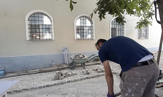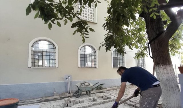 Kırklareli'nin Babaeski ilçesine bağlı Pancarköy'de cami imamı Kamuran Doğan, camii cemaati ile birlikte caminin bakım ve onarımını yaptı.