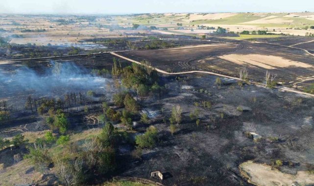 Babaeski'de tarım arazisinden askeri bölgeye sıçrayan yangın kontrol altına alındı