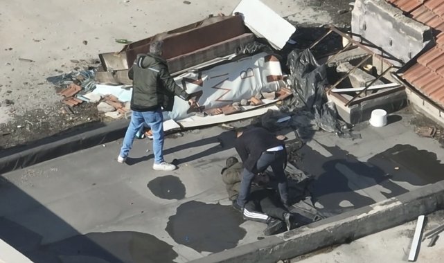 Kayseri'nin Melikgazi ilçesinde tartıştığı babasını bıçaklayarak öldüren şahıs, polis ekipleri tarafından bir işyerinin çatısında yakalandı. O anlar anbean görüntülendi.