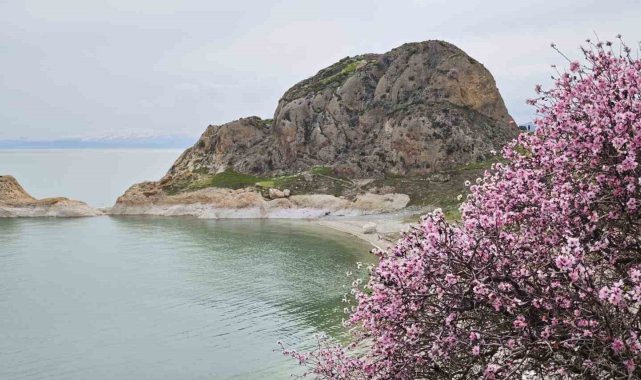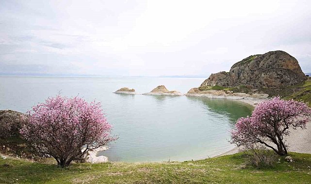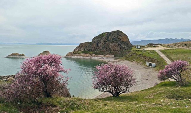 Badem çiçekleri Van Gölü kıyılarını renklendirdi