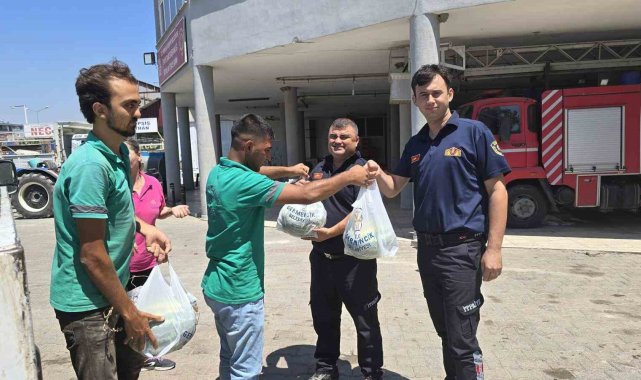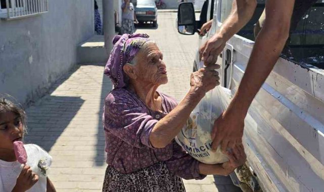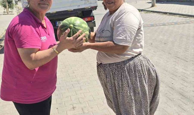 Aydın'ın Germencik ilçesinde bağışlanan karpuzlar vatandaşlara dağıtıldı.