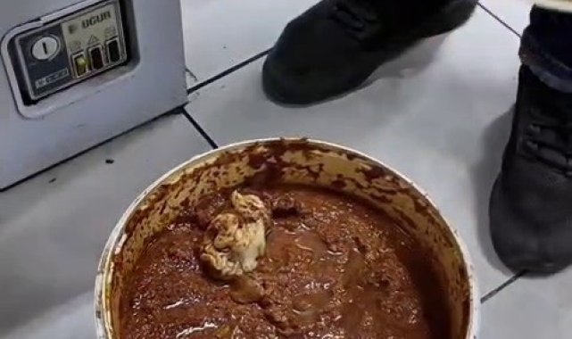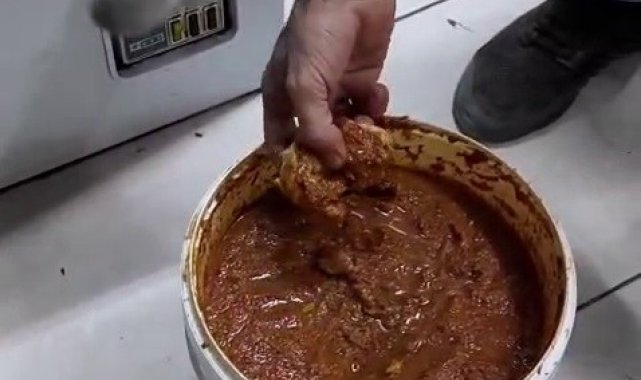 Hatay'ın Dörtyol ilçesinde zabıta ekiplerinin iş yeri denetimi esnasında baharat dolu kovanın içerisine bırakılan çiğ et ekipleri şaşırtırken, işletmecinin eti baharat bozulmasın diye koyduğunu söylemesi dikkat çekti.