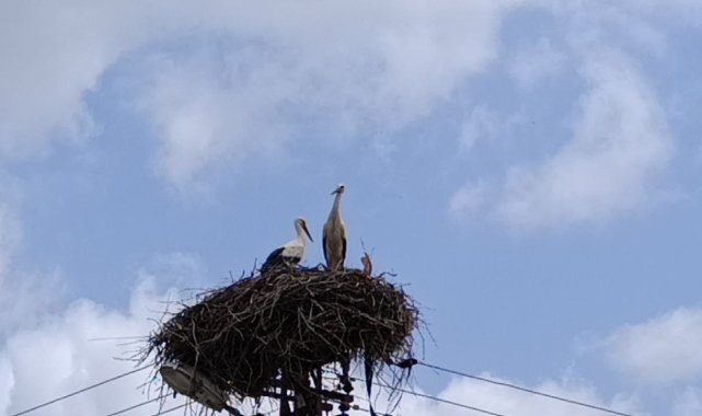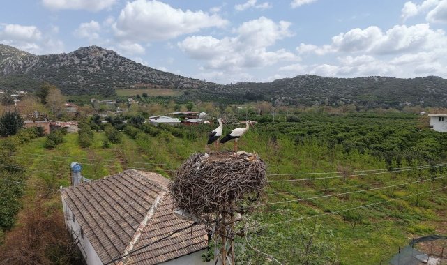 Baharın habercisi leylek, yuvasına bu yıl da eşiyle birlikte geldi