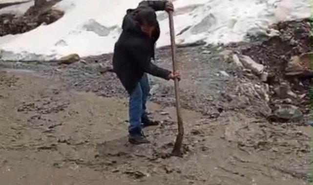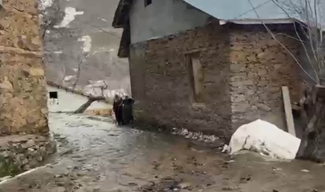 Bahçesaray'da dağlarda kar, mahallede sel
