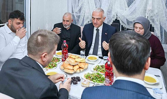 Kültür ve Turizm Bakanı Mehmet Nuri Ersoy, Kırıkkale'de iftarda Ürkmez ailesinin evini ziyaret ederek iftar sofrasına konuk oldu.