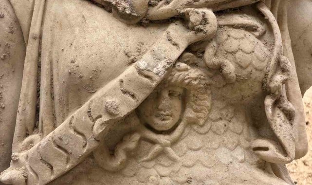 Kültür ve Turizm Bakanı Mehmet Nuri Ersoy, Laodikeia Antik Kenti'nde yürütülen kazı ve restorasyon çalışmalarına ilişkin, "Laodikeia Batı Tiyatrosu'nda yürüttüğümüz çalışmalar, geçmişin izlerini gün yüzüne çıkarmayı sürdürüyor" dedi.Denizli'nin önemli kültürel miraslarından Laodikeia Antik Kenti'nde sürdürülen kazı ve restorasyon çalışmaları, antik dönemin sanatsal ve kültürel birikimini günümüze taşımaya devam ediyor. Kentte özellikle Batı Tiyatrosu sahne binasında yürütülen çalışmalar, yeni buluntularla arkeoloji dünyasına önemli veriler sunuyor.Kültür ve Turizm Bakanı Mehmet Nuri Ersoy, antik kentte yürütülen çalışmalara ilişkin sosyal medya hesabından yaptığı paylaşımda, Batı Tiyatrosu'nda ortaya çıkarılan yeni buluntuyu duyurdu.Bakan Ersoy, paylaşımında şu ifadeleri kullandı:"Laodikeia'da önemli bir keşfe daha imza attık. Antik kentte yeni bir buluntu daha gün yüzüne çıktı. Laodikeia Batı Tiyatrosu'nda yürüttüğümüz çalışmalar, geçmişin izlerini gün yüzüne çıkarmayı sürdürüyor. Sahne binasında, yaklaşık 2 metre uzunluğunda, beyaz mermerden yapılmış Athena heykelini gün ışığına çıkardık. Homeros destanlarına sahne olan bu yapı, antik dönemde kültürel anlatımın da merkezi olduğunu ortaya koyarken Augustus Dönemi klasik üslubunu yansıtan eser, yüksek sanatsal niteliğiyle dikkat çekiyor. Geleceğe Miras vizyonumuzla, bu eşsiz mirası koruyarak geleceğe taşımaya devam ediyoruz."Athena Heykeli molozlar arasında bulunduLaodikeia Batı Tiyatrosu Sahne Binası'nda yürütülen kazı ve restorasyon çalışmaları kapsamında, postskene olarak adlandırılan sahne binasının dış duvarında, moloz dolgu içerisinde yüzüstü şekilde bırakılmış Athena heykeline ulaşıldı.Yaklaşık 2 metre uzunluğundaki heykelin baş kısmı henüz tespit edilemezken beyaz mermerden yapılmış olması dikkat çekti.Sahne binası Homeros destanlarını anlatan heykellerle donatıldıMilattan önce 2'nci yüzyıla tarihlenen Batı Tiyatrosu sahne binasında, üç katlı mimari düzen içerisinde her katta 16 sütun yer alıyor. Bu sütunlar arasına tanrı ve tanrıçaların yanı sıra yöneticilere ve Homeros destanlarına ilişkin sahneleri betimleyen heykeller yerleştirildi.Odysseus'un İthaka'ya dönüş yolculuğunda karşılaştığı Laistrigonlar Ülkesi, dev Polyphemos'un mağarası ve deniz canavarı Skylla gibi sahneleri içeren heykel grupları, yapının yalnızca tiyatral gösteriler için değil aynı zamanda kültürel anlatımın aktarımı için de kullanıldığını ortaya koydu. 2024-2025 yıllarında yürütülen çalışmalarda bu anlatımlara ilişkin çok sayıda heykel gün yüzüne çıkarıldı.Ünik tipoloji ve yüksek sanatsal işçilikYuvarlak kaide üzerinde ayakta betimlenen Athena heykelinde, ince dokumalı kolsuz peplos giysi, boyunda hylamis (pelerin) ve göğüste Medusa başı ile yılanların yer aldığı aegis detayları dikkat çekiyor. Heykelin elbise kıvrımları ve kumaşın doğal işlenişi, yüksek sanatsal kaliteyi ortaya koyarken boynunda pelerin bulunan tipolojinin ünik olması eserin önemini artırıyor. Heykelin, sütunlar arasına yerleştirilmiş olması nedeniyle arka yüzünün kaba bırakıldığı tespit edilirken eserin usta bir heykeltıraşın elinden çıktığı değerlendiriliyor.Augustus dönemi klasik üslubunu yansıtıyorSanatsal stil açısından değerlendirildiğinde Athena heykelinin, İmparator Augustus Dönemi'ne (MÖ 27 - MS 14) ait birinci klasik üslubu yansıttığı belirtiliyor.Antik Dönem'de önemli bir dokuma merkezi olan Laodikeia'da Athena'nın savaşçı kimliğinden ziyade dokuma yönünün ön plana çıktığı, tanrıça adına festivaller düzenlendiğinin yazıtlarla belgelendiği ifade ediliyor.Ayrıca, Batı Tiyatrosu sahne binasında yürütülen restorasyon çalışmalarının 2026 yılı başından itibaren kesintisiz şekilde sürdürüldüğü belirtiliyor.
