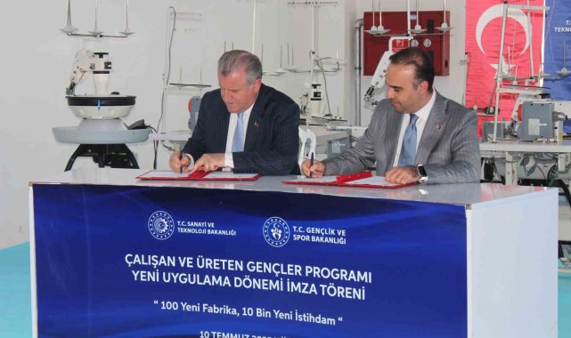 Sanayi ve Teknoloji Bakanı Mehmet Fatih Kacır ile Gençlik ve Spor Bakanı Osman Aşkın Bak, Siirt'te 'Çalışan ve Üreten Gençler Programı' kapsamında düzenlenen imza törenine katıldı.