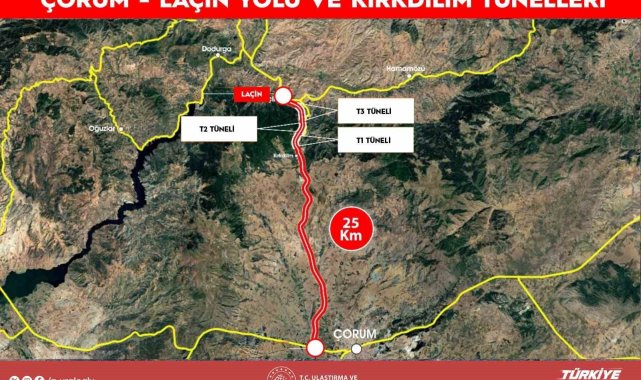 Ulaştırma ve Altyapı Bakanı Abdulkadir Uraloğlu, seyahat süresini 30 dakikadan 15 dakikaya düşüren Çorum-Laçin yolu ve Kırkdilim Tünelleri'nin resmi açılışını yarın gerçekleştireceklerini bildirdi