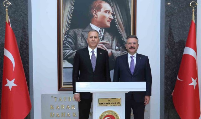 İçişleri Bakanı Ali Yerlikaya, Eskişehir'de katıldığı toplantının ardından Eskişehir Valiliği'ne ziyarette bulundu.İçişleri Bakanı Ali Yerlikaya, bir takım ziyaretler için Eskişehir'e geldi. 'Türkiye'nin Huzuru Eskişehir' toplantısına katılarak emniyet ve jandarma yetkililerinden brifing alan Bakan Yerlikaya, kentin ve ülkenin asayişiyle ilgili önemli istatistiksel bilgileri açıkladı. Bakan Ali Yerlikaya, programın bitmesinin ardından Eskişehir Valiliği'ni ziyaret etti. Eskişehir Valisi Hüseyin Aksoy ile makamında görüşen İçişleri Bakanı, günün anısına Valilik Şeref Defteri'ni imzaladı.