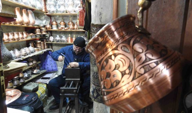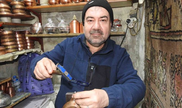 Gaziantep'te geçmişi yüzyıllar öncesine kadar dayanan ata mesleği bakırcılık mesleğini günümüzde devam ettiren bakır ustaları, bakıra şekil verirken bakırdan çıkan sesle huzur buluyor.Gaziantep'te yaklaşık 5 asır önce inşa edilen tarihi Bakırcılar Çarşısı'nda bakır ustaları tarafından el emeği göz nuruyla bin bir zahmetle üretilen bakır işlemeleri adeta göz kamaştırıyor. Asırlardan bu yana çekiç seslerinin hiç susmadığı çarşıda bakır üretimi yapan ustaları, ata mesleklerini devam ettiriyor.Bakırcılar Çarşısı'nda bulunan dükkânlarında güne bir koronun ahenkli ritmini andıran ve insana huzur veren çekiç sesleriyle başlayan ustalar, gün boyu devam eden bu seste huzur buluyor.Gün boyu bir ellerinde darbe kalemi diğerinde de çekiçle bakıra şekil veren ustalar, tarihi çarşıda çekiç seslerinin susmaması ve mesleklerini ilerlemesi için çaba sarf ediyor.Geçmişte evlerin hemen her alanında olduğu gibi günümüzde de özellikle Kovid-19 salgının ardından yeniden kullanımı artan ve son dönemlerde de çoğunlukta süs eşyası olarak değerlendirilen bakırları ince ince işleyen ustalar, zahmetin, emeğin ve alın terinin işareti olan çekiç sesleriyle motive olmanın yanı sıra günün yorgunluğunu da atıyor.Tarihi Bakırcılar Çarşısı'nda dinmeyen çekiç sesleri kimi ustalar için enstrüman sesi gibi gelirken kimi ustalar için de günün verdiği yorgunluğu giderici olarak görülüyor.Bakırcı esnafının el emeği göz nuruyla tek tek işleyerek meydana getirdiği ürünler yurt içinin yanı sıra yurt dışında büyük ilgi görüyor. Bakır ustalarının bin bir emek ve zahmetle ürettikleri tencere, kazan, kahve takımları, paşa mangalları, sürahiler, tepsiler ve cezveler çeşitli motiflerle süsleniyor.Yurt içine ve yurt dışına pazarlanan işlemeli bakır ürünler, Gaziantep'i gezmeye gelen yerli ve yabancı turistler tarafından da yoğun ilgi görüyor.Ağabeyinden öğrendiği bakırcılık mesleğini yaklaşık 35 yıldır tarihi Bakırcılar Çarşısı'nda sürdüren 53 yaşındaki Bülent Göksu, güne bir korunun ahenkli ritminin andıran çekiç sesleriyle başladıklarını ve kimilerini rahatsız etse de gün boyu devam eden bu sesle motive olduklarını ve huzur bulduklarını ifade etti.Gün boyu bakıra şekil verirken çekiçten çıkan sesin kendilerini rahatsız etmediğini ifade eden Göksu, çekiç seslerinin kendileri için müzik niteliğinde olduğunu belirtti.Bakırcılık mesleğini ağabeyinden öğrendiğini belirten Göksu, "Bakırcılık mesleğine 8 yaşında iken başladım. O dönem hem okula giderdim hem de mesleği öğrenmeye çalıştım. Yaklaşık 30-35 yıldan beri de bu mesleğin içerisindeyim. Mesleğimiz kolay bir meslek değil. Bakırcılık mesleğini öğrenebilmek için uzun bir zaman gerekiyor. Benim bir 15-16 sene kalfalık dönemim oldu. Ondan sonra da ustalık dönemim başladı. Askeri gidip geldikten sonra kendi iş yerimi açtım" dedi.Göksu, bakırın son zamanlarda yeniden kullanılmaya başladığını ve turistik eşya olmasının yanı sıra kalaylandığı için sağlıklı olmasından dolayı da tercih edilmeye başlandığını belirterek, "Dana önce sanatımız bu kadar pek ilgi görmüyordu. Medyanın, sosyal medyanın etkisi, Gaziantep'te tarihi hanların, camilerin ve müzelerin restore edilerek açılması, kültür merkezlerinin oluşması gibi etkenlerden dolayı insanlar Gaziantep'e ilgi duyuyorlar. Gaziantep gastronomi ve turizm şehri olduğu için yemekleri için ve gezmek için gelenler oluyor. İnsanlar Gaziantep'e geldikleri zamanda esnafa katkısı oluyor. Mesleğimizde gelişiyor. İnsanlar bakıra daha fazla önem vermeye başladılar" diye konuştu.Gaziantep'te üretilen bakır ürünlerinin, Amerika ve Çin'in yanı sıra birçok Avrupa ülkesine de ihraç edildiğini bildiren Göksu, Gaziantep'te ürettikleri bakır ürünleri e-ticaretle tüm dünyaya sattıklarını söyledi.