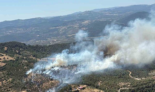 Balıkesir'de araziden ormana sıçrayan yangına müdahale sürüyor