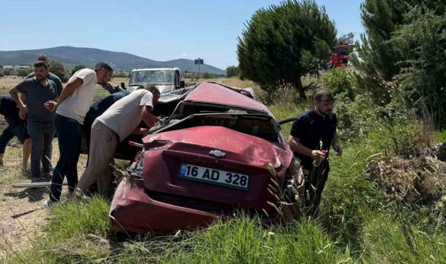 Balıkesir'de otomobil şarampole uçtu: 2 yaralı