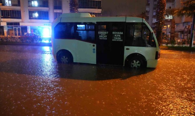 Balıkesir'in Edremit, Burhaniye, Gömeç, Ayvalık ve Havran ilçelerinde etkili olan sağanak yağış ve lodos fırtınası hayatı olumsuz etkiledi. Bazı yerlerde su baskınları yaşandı.Akşam saatlerinden itibaren etkisini artıran yağışla birlikte Edremit'in Hüsnü Elçin Yıldırım Caddesi dakikalar içinde sular altında kaldı. Bazı araçlar suya gömülürken, iş yerlerini su basan vatandaşlar kendi imkanlarıyla suyu tahliye etmeye çalıştı. Bazı iş yerlerinde ise maddi hasar meydana geldi. Edremit Belediyesi ekipleri, bölgede oluşan su birikintileri ve taşkınların önüne geçebilmek için yoğun bir çalışma yürüttü.Yağışın sabah saatlerine kadar bölgede kısmen etkili olması bekleniyor. Yetkililer, vatandaşları dikkatli ve tedbirli olmaları konusunda uyardı.