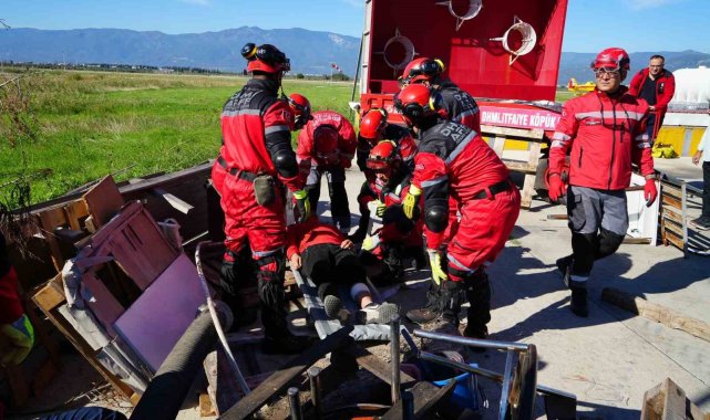 Balıkesir'deki 6.1'lik depremin ardından Koca Seyit Havalimanında ekipler kurtarma tatbikatı yaptı