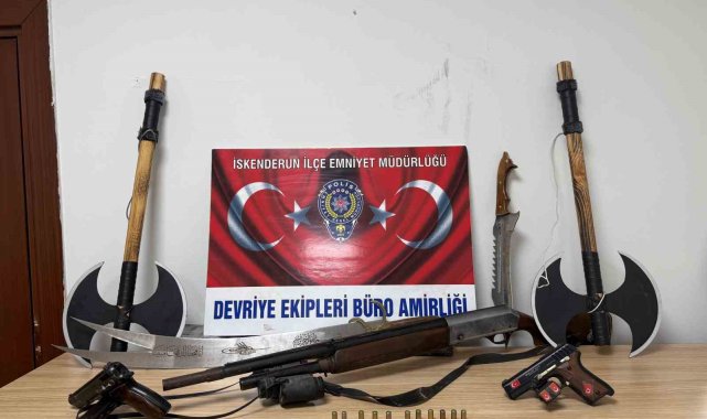 Hatay'da evinin balkon kısmında tüfek, tabanca, balta ve kılıcı çamaşır asarcasına asan ve sergileyen şahıs yaptığıyla hayrete düşürdü.İskenderun ilçesi Yunus Emre Mahallesi'nde müstakil bir evin balkon kısmında, gözle görülür vaziyette silah ve farklı eşyalar sergilendiği bilgisini alan polis ekipleri eve giderek çalışma başlattı. Hatay Emniyet Müdürlüğü görevlilerince 17 Nisan tarihinde söz konusu eve gidildiğinde; 1 adet tüfek, 2 adet tabanca, balta ve kılıcın çamaşır gibi balkonda asılı olduğu görüldü. Yaptığıyla hayrete düşüren şüpheli B.A. yakalandı ve hakkında gerekli işlemler yapıldı.