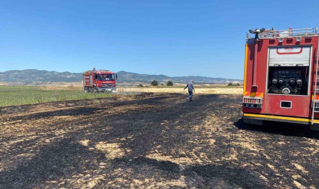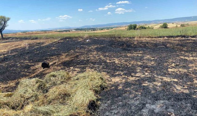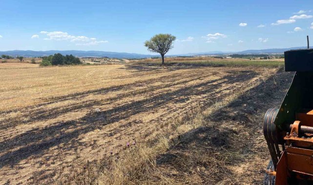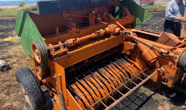 Balya makinesinde çıkan yangın tarlaya sıçradı, ekiplerin müdahalesiyle söndürüldü