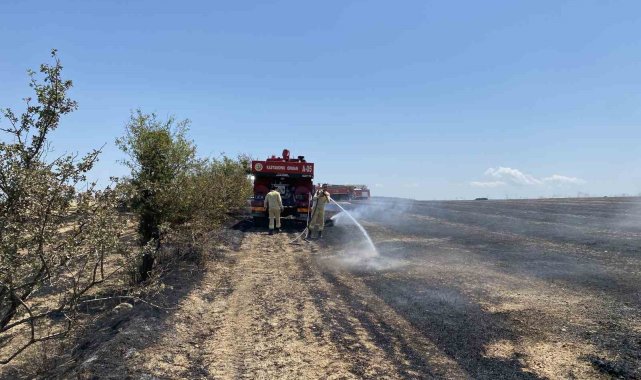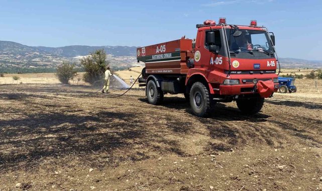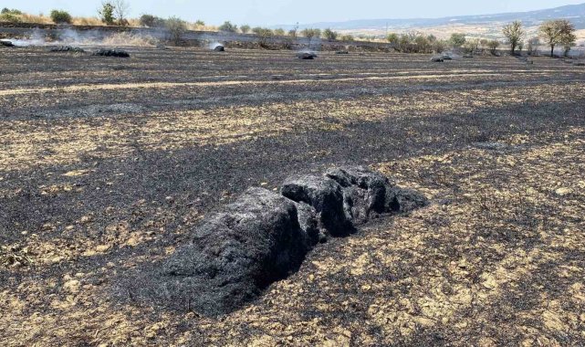 Balya makinesinden çıkan yangın 40 dönüm tarım arazisini kule çevirdi