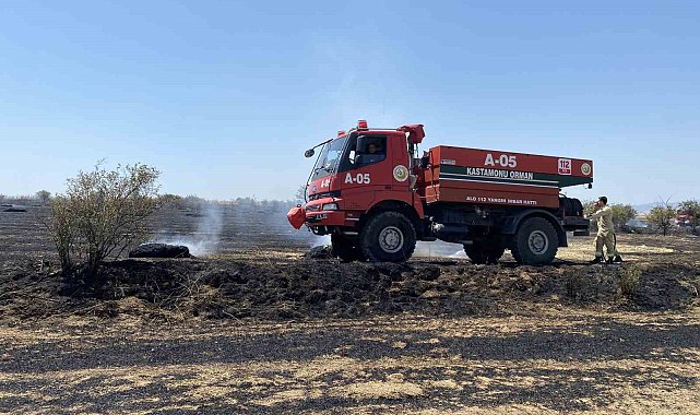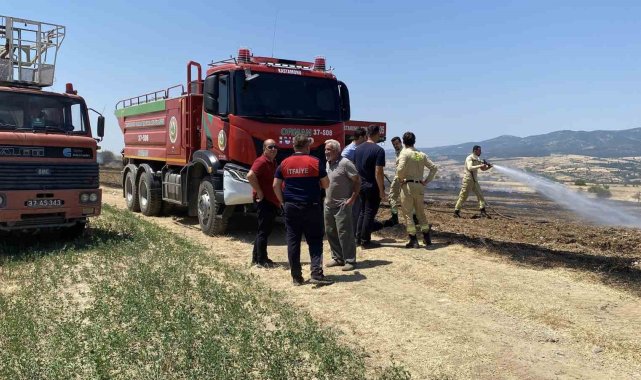 Kastamonu'da balya makinesinden kaynaklı çıkan yangınında 25'i ekili olmak üzere 40 dönüm tarım arazisi ve balyalar zarar gördü.