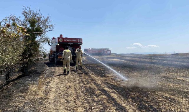 Kastamonu'da balya makinesinden kaynaklı çıkan yangınında 25'i ekili olmak üzere 40 dönüm tarım arazisi ve balyalar zarar gördü.Olay, Merkez ilçeye bağlı Ortaboğaz köyü mevkiinde meydana geldi. Edinilen bilgiye göre tarlada balya yapım sırasında makineden kaynaklı yangın çıktı. Kısa sürede büyüyen yangın bölgedeki tarlaları sardı. Yangını gören vatandaşlar durumu 112 Acil Çağrı Merkezine bildirdi. İhbar üzerine olay yerine çok sayıda itfaiye ve orman ekibi sevk edildi. Yangın ekiplerin müdahalesiyle kısa sürede kontrol altına alınarak söndürüldü.Yangında 25'i ekili olmak üzere toplam 40 dönüm tarım arazisi zarar gördü. Tarlalarda bulunan balyalar ise küle döndü.Yangınla ilgili inceleme başlatıldı.