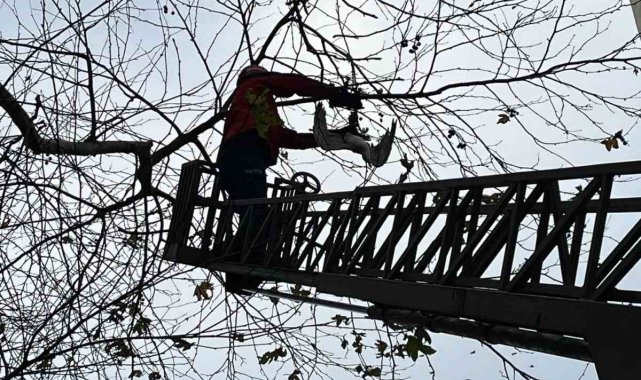 Bandırma'da ağaçta mahsur kalan ayağı kırık martı tedavi altına alındı