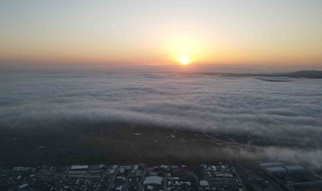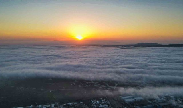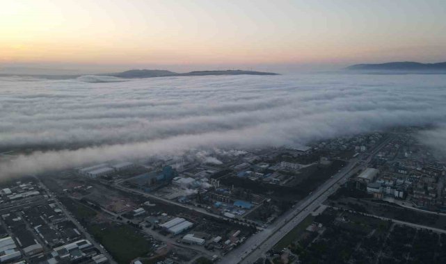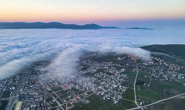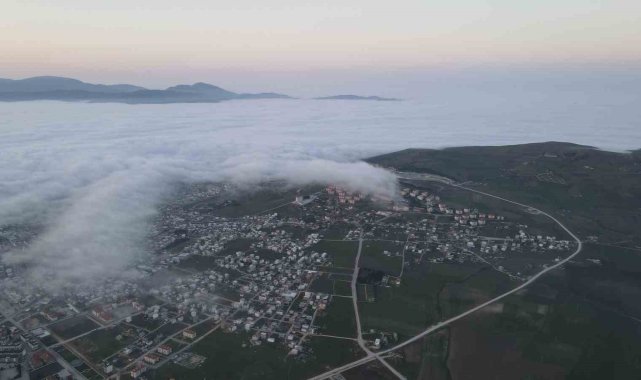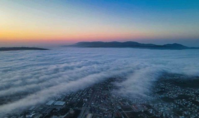 Balıkesir'in Bandırma ilçesinde deniz üzerinden yükselen yoğun sis bulutları seyri doyumsuz manzara oluşturdu.Bandırma ve Erdek bölgelerinde etkili olan sis, gece boyunca belirli aralıklarla devam etti. Gündüz sıcaklığının 15 derecelerden 9 dereceye gerilemesiyle deniz üzerinden yükselen yoğun sis bulutları, şehri adeta bir örtü gibi kapladı. Sis bulutlarının şehre doğru süzülmesi, dronla havadan görüntülendi. Sis bulutları seyri eşsiz bir manzara ortaya çıkardı. Uzmanlar, özellikle sürücüler için dikkatli olunması için uyarılarda bulundu.