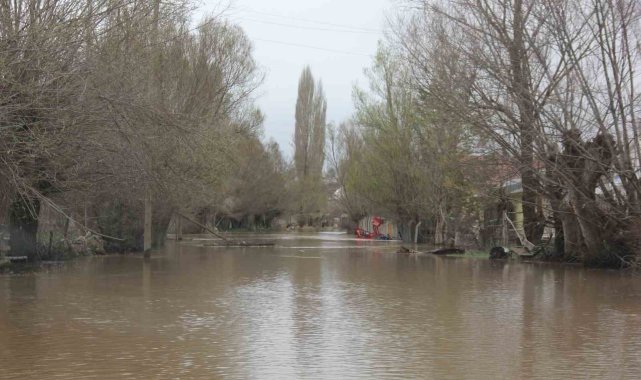Sivas'ta etkili olan yoğun yağışların ardından baraj kapaklarının açılmasıyla Kızılırmak taştı, Zara ilçesine bağlı Canova köyü sular altında kaldı.