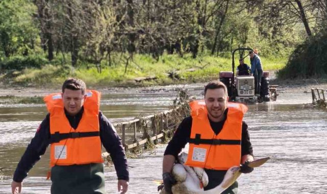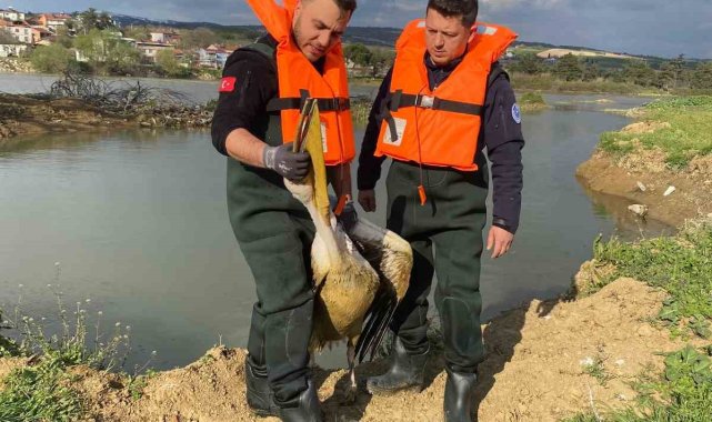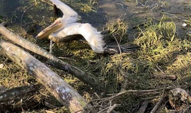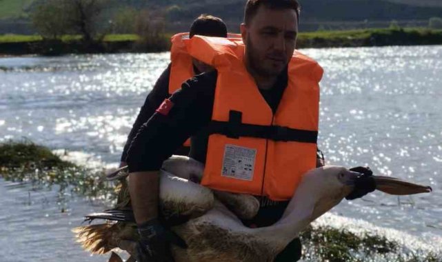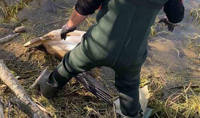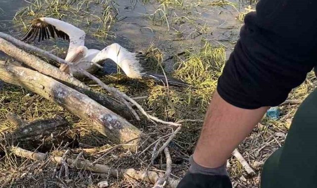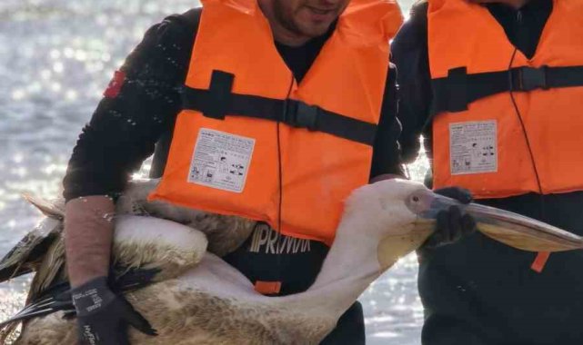 Barajda mahsur kalan pelikan böyle kurtarıldı