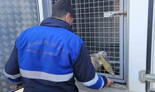 Bursa'nın İnegöl ilçesinde barajdaki çalılık alanda mahsur kalan yaralı pelikan, itfaiye ekiplerinin müdahalesiyle kurtarıldı.