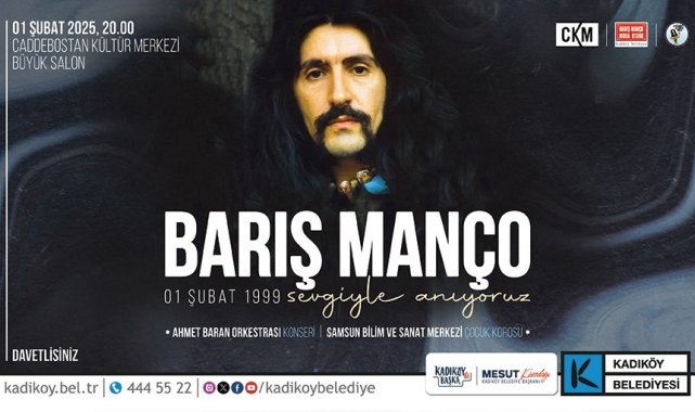 7'den 70'e herkesin sevgisini kazanan, Türkiye'nin efsane sanatçılarından Barış Manço, aramızdan ayrılışının 26. yıl dönümünde Kadıköy'de anılacak.Anadolu Rock müziğinin duayen isimlerinden; şarkıcı, besteci ve söz yazarı Barış Manço, vefatının 26. yıl dönümünde Kadıköy Belediyesi'nin düzenlediği bir etkinlikle anılacak. "Barış Manço'yu Sevgiyle Anıyoruz" anma programı 1 Şubat Cumartesi akşamı saat 20.00'de Caddebostan Kültür Merkezi'nde gerçekleştirilecek. Programda Ahmet Baran Orkestrası ve Samsun Bilim ve Sanat Merkezi Çocuk Korosu Barış Manço şarkılarını seslendirecek.Kadıköy Belediyesi'nin Manço ailesi ile birlikte ve Halkbank'ın desteğiyle müze haline getirdiği Barış Manço'nun Moda'daki evi de, anma programı kapsamında her yıl olduğu gibi bu yıl da 31 Ocak günü saat 24.00'e kadar ziyaretçilere açık olacak. Barış Manço'nun eşyalarının olduğu ev ücretsiz olarak gezilebilecek.