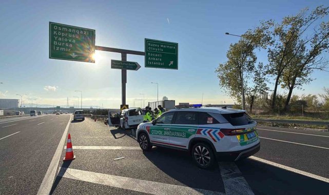 KOCAELİ (İHA) – Kocaeli'de hafif ticari araç bariyerlere ok gibi saplandı. Bariyer önden girip, arkadan çıkarken feci kazadan sürücü yaralı kurtuldu.Kaza, TEM Otoyolu ve Kuzey Marmara Otoyolu yol ayrımında meydana geldi. Edinilen bilgiye göre, Ankara istikametinde seyreden sürücüsünün E.A. idaresindeki 06 CUD 439 plakalı Ford marka hafif ticari araç, kontrolden çıktı. Sürücüsünün direksiyon hakimiyetini kaybettiği araç, bariyerlere adeta ok gibi saplandı. Demir bariyerlerin aracın içini delerek geçtiği kazada sürücü yaralandı. Durum 112 Acil Çağrı Merkezi'ne bildirildi. İhbar üzerine bölgeye sağlık ve jandarma ekipleri sevk edildi. Olay yerine gelen sağlık ekipleri tarafından, hurdaya dönen araçtan yaralı kurtulan sürücü, ambulansta yapılan ilk müdahalenin ardından hastaneye kaldırıldı.Kazayla ilgili inceleme başlatıldı.
