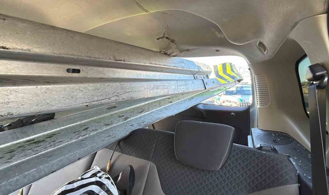 KOCAELİ (İHA) – Kocaeli'de hafif ticari araç bariyerlere ok gibi saplandı. Bariyer önden girip, arkadan çıkarken feci kazadan sürücü yaralı kurtuldu.