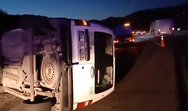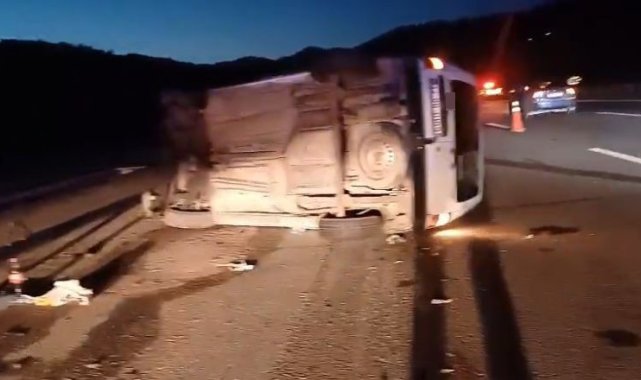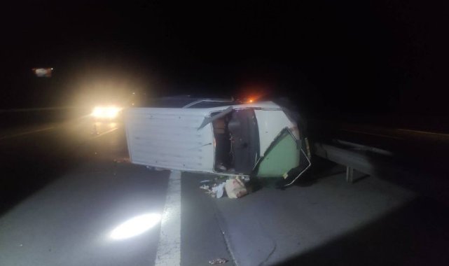 Bolu TEM Otoyolu'nda kontrolden çıkan hafif ticari araç, bariyerlere çarparak yan yattı. Sürücü kazayı yara almadan atlattı.