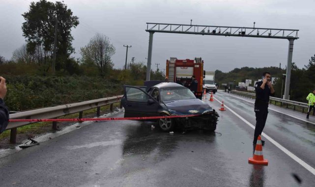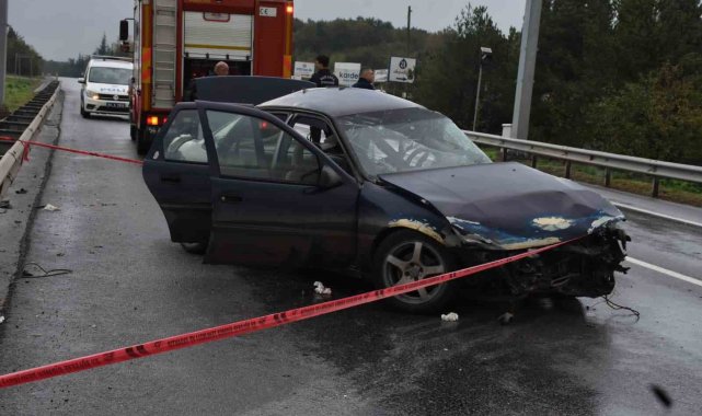 Sakarya'nın Hendek ilçesinde farklı bir aracın çarpıp kaçtığı iddia edilen otomobil bariyerlere çarparak hurdaya döndü. Kazada 1 kişi hayatını kaybetti, 2 kişi yaralandı.Kaza, Anadolu Otoyolu bağlantı yolunda meydana geldi. İddiaya göre, Ali Acet (51) yönetimindeki 34 Y 8237 plakalı Opel marka otomobile, henüz plakası ve sürücüsü belirlenemeyen bir aracın çarpıp olay yerinden uzaklaştı. Çarpmanın etkisiyle kontrolden çıkan otomobil bariyerlere çarparak adeta kağıt gibi ezildi. İhbar üzerine olay yerine sağlık, polis ve itfaiye ekipleri sevk edildi. Araçta sıkışan sürücü Ali Acet ile M.D. ve N.İ. isimli yolcular ekiplerce çıkarılarak ambulanslarla hastaneye kaldırıldı. Sürücü Ali Acet, hastanede yapılan tüm müdahalelere rağmen kurtarılamadı.Kazaya karıştığı iddia edilen diğer aracın tespiti için çalışma başlatıldı. Hurdaya dönen otomobil, yapılan incelemelerin ardından çekiciyle olay yerinden kaldırıldı.