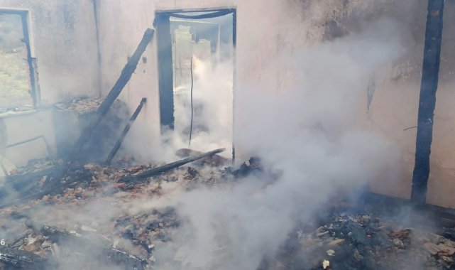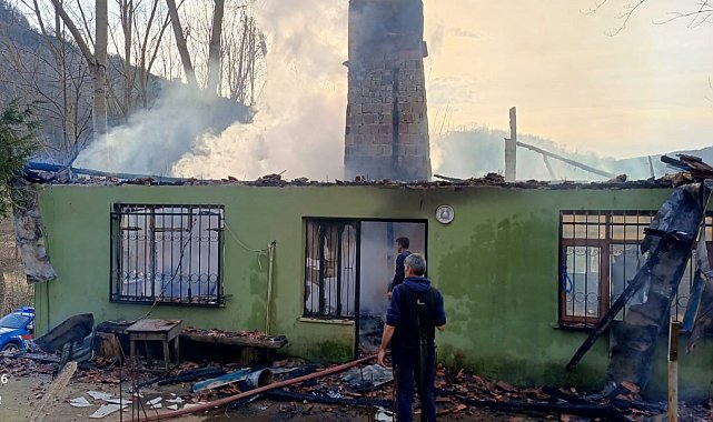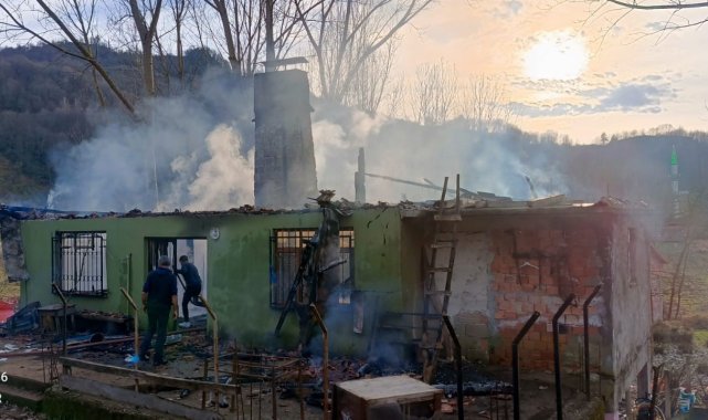 Bartın'ın Amasra ilçesine bağlı Kocaköy'de 2 katlı evin bacasından çıktığı tahmin edilen yangında üst kat kullanılamaz hale geldi.