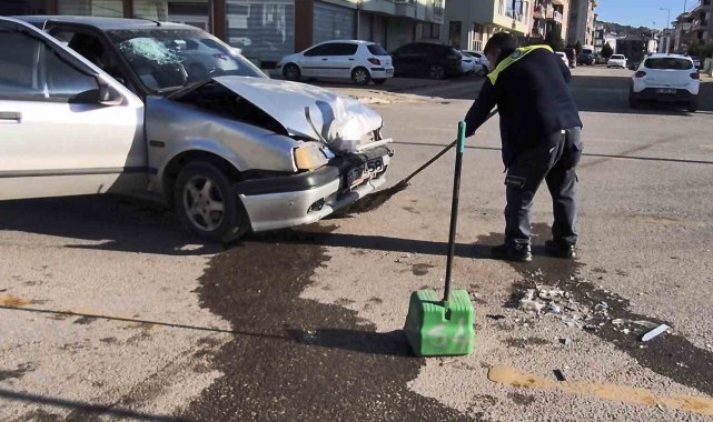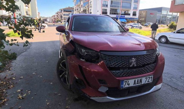 Bartın'da 2 otomobil kavşakta çarpıştı. Güvenlik kamerasına yansıyan kazada 3 kişi yaralandı.