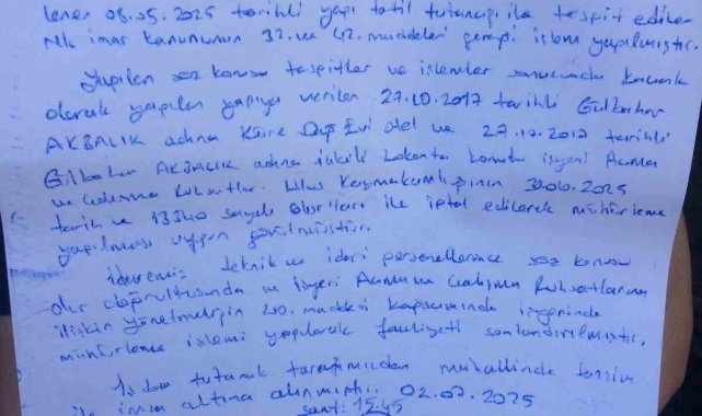 Bartın'da yıl başında çıkan yangında büyük hasar gören ve yeniden onarılan Küre Dağ Evi isimli turistik tesis kaçak yapı gerekçesiyle mühürlendi.Bartın'ın Ulus ilçesinde 1998 yılında BAKKA Teşvikleri Projesi ile yapımına başlanan ve 11 yıl öncede dönemin milletvekili olan bugünkü Adalet Bakanımız Yılmaz Tunç'un da katıldığı törenle hizmete açılan 10 odalı Küre Dağ Evi Konaklama Tesisi, mühürlendi. 8 Haziran 2025 tarihli kaymakamlık kararı ile Bartın İl Özel idaresince "kaçak izinsiz yapı" gerekçesiyle kapısına mühür vurulan tesisin önümüzdeki dönemde yıkılması planlanıyor.11 yıldır yerli ve yabancı turistleri ağırlayan tesisin mühürlenmesi, tesis sahibi ve çalışanlarının yanı sıra bölge halkını da üzdü.Tesiste 1 Ocak 2025 tarihinde yangın çıkmış ve yeniden restore çalışmalarına başlanmış ve 160 bin TL maliyetle çatı tadilatı ve onarımı tamamlanarak, 1 Mayın 2025 tarihinde yeniden hizmete vermeye başlamıştı