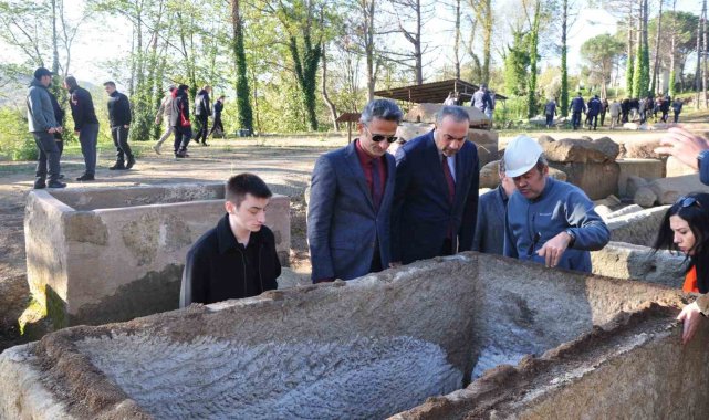 Bartın Üniversitesi (BARÜ) Rektörü Prof. Dr. Ahmet Akkaya, Zonguldak Filyos'ta yer alan Tios Antik Kenti'nin doğu nekropolünde sürdürülen kazı çalışmalarını yerinde inceledi. Kazı başkanlığını Cumhurbaşkanlığı kararıyla BARÜ adına yürüten Sanat Tarihi Bölüm Başkanı Prof. Dr. Şahin Yıldırım tarafından antik kentin tarihi önemi ve gün yüzüne çıkarılan eserler hakkında bilgiler verildi.Ayrıca Prof. Dr. Yıldırım, özgün mimari dokusu korunarak kazı alanında şimdiye kadar 96 lahit, 23 oda, 7 sanduka ve 60 çatkı kiremit mezar tespit edildiğini toplamda 1317 eserin gün yüzüne çıkarıldığını aktardı. Roma Dönemi'ne tarihlenen geniş nekropol alanında, yaklaşık 500 metre uzunluğundaki antik caddenin her iki yanında sıralanan lahitler ve yamaçlara oyulmuş oda mezarlar Rektör Akkaya tarafından incelendi.Ziyaret kapsamında Tios Antik Kenti'nin korunması ve turizme kazandırılması noktasında yapılabilecekler üzerine görüş alışverişinde de bulunuldu.Elde edilen verilerin antik kentin tarihi ve arkeolojik değerine yeni bir boyut kazandıracağını ifade eden Rektör Akkaya, bölgedeki kültürel miras çalışmalarına bilimsel destek vermeye devam edeceklerini belirterek Prof. Dr. Şahin Yıldırım'a çalışmalarında başarılar diledi.Ziyarette Zonguldak Valisi Osman Hacıbektaşoğlu, Zonguldak Milletvekili Ahmet Çolakoğlu, Çaycuma Kaymakamı Adem Kaya, Filyos Belediye Başkanı Erol Acar da yer aldı.