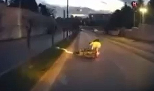 İstanbul'un Başakşehir ilçesinde, motosikletin çukura çarpması sonucu meydana gelen kaza araç kamerası tarafından kaydedildi.Kaza, geçtiğimiz gün sabah saatlerinde Eskoop Sanayi Sitesi'nin önünü çevreleyen cadde üzerinde yaşandı. Edinilen bilgiye göre, motosiklet sürücüsü yolu kullanırken, asfaltta bulunan derin çukura denk geldi ve kontrolünü kaybederek yola savruldu. Çarpmanın etkisiyle motosiklet sürücüsü yerde sürüklenirken, olay anı yol üzerindeki başka bir aracın kamerasına net şekilde yansıdı.Kazada, kontrolü kaybeden sürücünün yaralı olarak yerde kaldığı ve çevredeki görüldü. Olay yerine polis ve sağlık ekipleri sevk edildi. İlk müdahalenin ardından motosiklet sürücüsü hastaneye kaldırıldı.Kamera görüntülerindeki detaylarda; motosikletin hızını azaltmadan ilerlediği, çukurla karşılaştığında dengesini yitirdiği ve sürücünün savrulduğu açık şekilde görüldü.