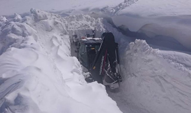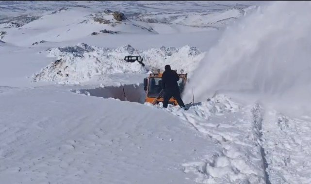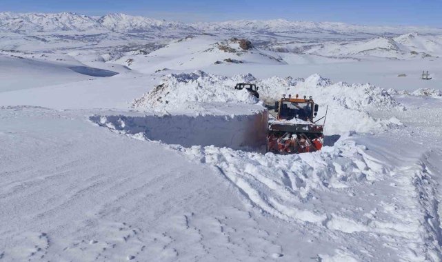 Van'ın Başkale ilçesinde yer yer 3 metreyi bulan kar tünellerinde ekiplerin yol açma çalışmaları devam ediyor.