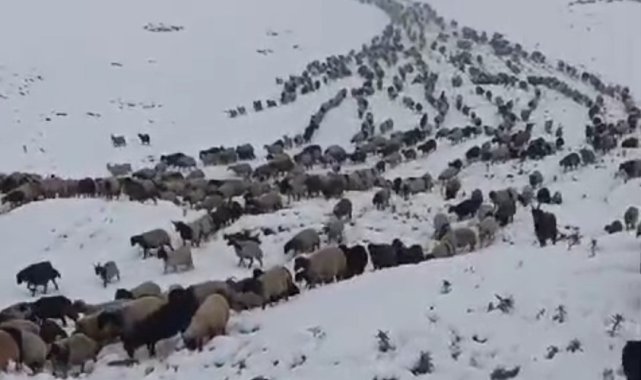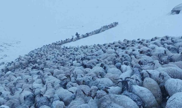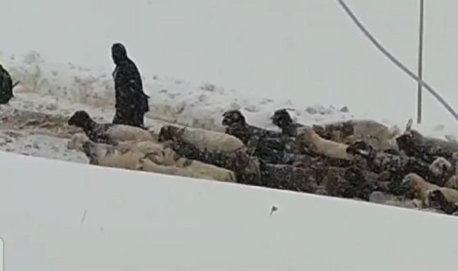 Van'ın Başkale ilçesinde etkili olan kar yağışı yolları kapatırken, yaylalarda bulunan küçükbaş hayvanlar ise ağıllara indirildi.