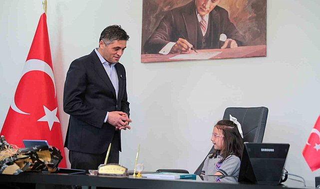Aliağa Belediye Başkanı Serkan Acar, 23 Nisan Ulusal Egemenlik ve Çocuk Bayramı'nda makamını temsili olarak Şehit Çavuş Bülent Kula İlkokulu 1. sınıf öğrencisi Burçin Ateş'e devretti.