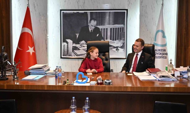 Balıkesir Büyükşehir Belediye Başkanı Ahmet Akın, 23 Nisan Ulusal Egemenlik ve Çocuk Bayramı dolayısıyla koltuğunu temsili olarak Kuzey Özcan ve Meryem Bacakoğlu'na devretti.