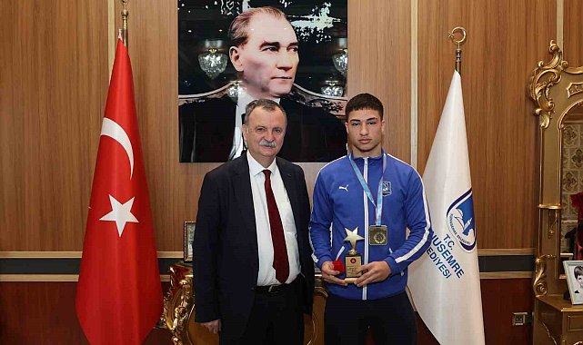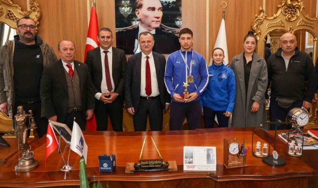 Yunusemre Belediye Başkanı Semih Balaban, Ankara'da düzenlenen Spor Toto Ümitler Türkiye Judo Şampiyonası'nda 73 kiloda şampiyon olan Yunusemre Belediyespor'un judocusu Emin Levent Yelkenci'yi tebrik ederek altınla ödüllendirdi.