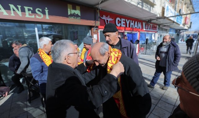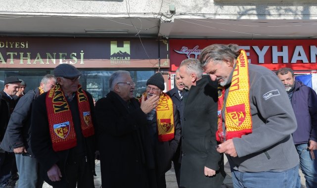 Kayseri Büyükşehir Belediye Başkanı Dr. Memduh Büyükkılıç, Hacılar ilçesinde vatandaşlarla bir araya gelerek gençlere Kayserispor atkısı hediye etti, büyüklerle sohbet etti.
