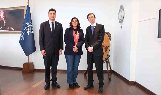Aydın Büyükşehir Belediye Başkanı Özlem Çerçioğlu'na, İtalya'nın İzmir Konsolosu Daniele Bianchi ve Aydın Sanayi Odası Yönetim Kurulu Başkanı Gökhan Maraş nezaket ziyaretinde bulundu.