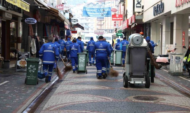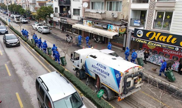 Aydın'ın Efeler ilçesinde sahaya inen Büyükşehir Belediyesi personelleri, sokaklarda temizlik çalışması gerçekleştirdi.