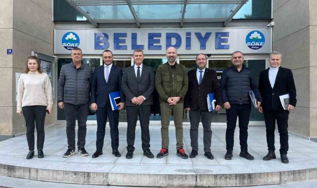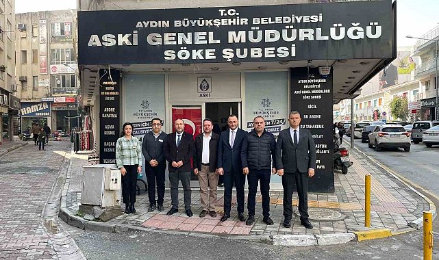 Aydın Büyükşehir Belediyesi Su ve Kanalizasyon İdaresi (ASKİ) Genel Müdürü Hakan Olkaç, Genel Sekreter Yardımcısı Zafer Uçar ve Burak Örnek ile Fen İşleri Dairesi Başkanı Ufuk Serdar Özmen, Söke Belediye Başkanı Mustafa İberya Arıkan'ı ziyaret ederek Aydın Büyükşehir Belediye Başkanı Özlem Çerçioğlu tarafından Söke ilçesine gerçekleştirilen yatırım ve çalışmaları değerlendirdi.